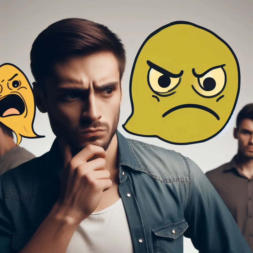 prompt: A person with a sad expression who becomes unhappy when compared to someone else, with emotions represented as a monster
