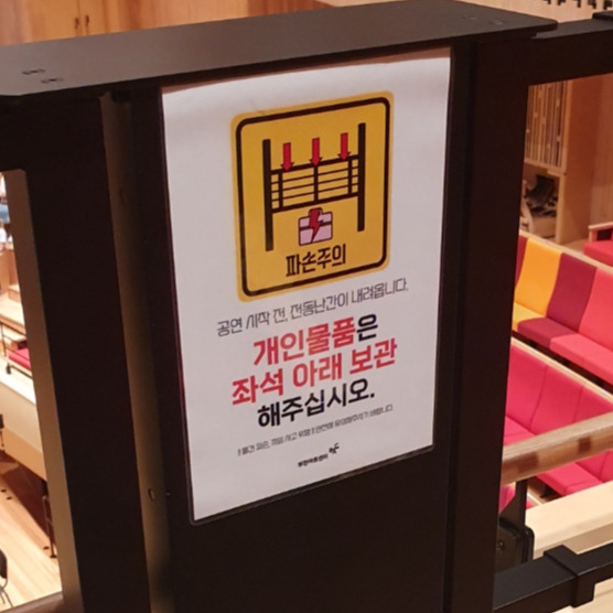 D: 2층, 3층은 추락사고 방지용으로 난간이 있잖아. 공연 중에는 어차피 다들 앉아있을테니 시야를 가리지 않게 치워주겠다는 거지.