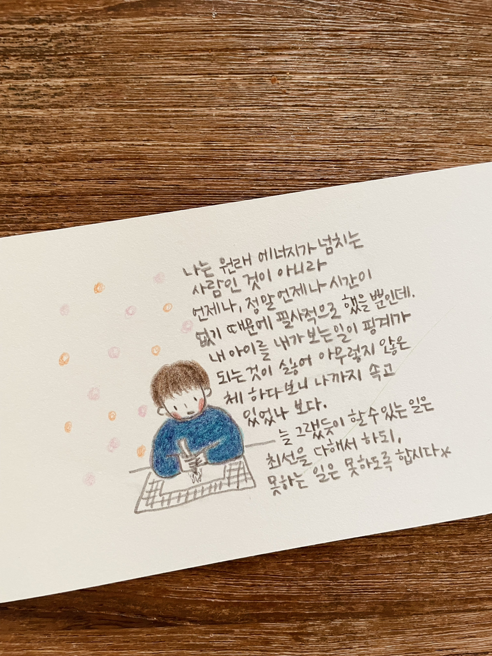 아이 둘을 키우는 것에 대해 누가 물으면 후회하지 않지만 추천하진 않는다고 답한다. 나의 일이나 삶을 지키려 노력하면서 아이를 낳아 키우는 여성은 누구나 그 사연으로 책 한 권을 쓸 수 있을 것이고, 둘 이상을 키우는 이는 (적어도 막내가 인간 비슷한 존재가 될 때까지)아무 것도 쓸 수 없을 것이다. 그럴 힘 같은 건 남아있지 않기 때문에. 나는 작가가 직업이기도 하므로 이것은 매우 곤란하다.