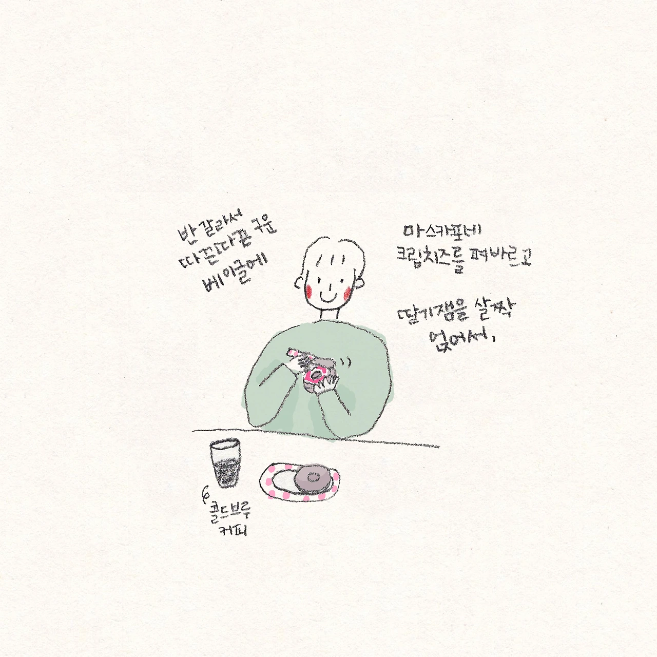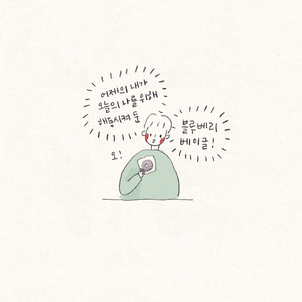 우선 맛있는 것을 먹는다. 아침엔 블루베리 베이글을 반 갈라서 발뮤다 토스터에 따끈따끈 구운 다음, 윗면에 크림치즈를 펴바르고 딸기잼을 살짝 얹는다. 내가 먼 옛날 스타벅스에서 알바할 때 배우고 반해버린 조합이다. 여기에 아이스 카라멜 마끼아또를 곁들이면 최고의 ‘카당지(카페인+당+지방. 탄단지의 흑화 버전?)’ 메뉴가 완성되지만 집에서는 콜드브루 커피에 아기 주먹만 한 곰돌이 얼음을 더하는 것으로 만족하기로 한다.