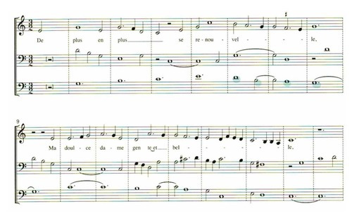 뒤페의 샹송들의 대부분은 3 성부였고, 87개를 남겼다는데 아주 드물게 4 성부 곡도 있다네요.