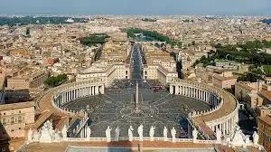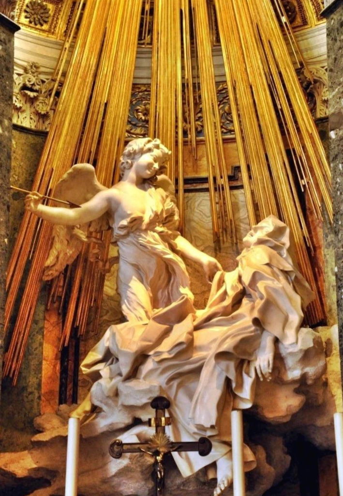 위의 그림은 바로크 화가들이 추구하던 극적인 효과를 나타내는 가장 멋진 작품으로, 16세기 스페인의 수녀인 아빌라의 테레사가 천사가 화살을 쏘아 자신을 찌르는 환상을 보는 장면을 연출한 것인데, 종교전쟁에서 방황하는 가톨릭교도들이 종교개혁에 반대하게 만들고자 하는 설득의 의지가 담긴 작품입니다. 화살을 맞는 테레사의 일그러진 얼굴이며 흐트러진 옷자락을 섬세하게 대리석으로 표현해 낸 이 작품은 벽에 단단히 붙어있어 마치 공중에 떠있는 것 같은 느낌을 주며, 무엇보다 위의 숨겨진 창에서 내려오는 금빛 불빛은 조각상의 뒤편으로 내려오며 환상적이며 경건한 마음이 들게 합니다. 베르니니는 바티칸의 성 베드로 광장도 설계했는데, 두 개의 반원 모양의 광장에 네 개의 기둥이 교회가 세계를 다 품 안에 안고 있다는 것을 표현하려 했다네요. 아직도 교황청 있는 로마의 바티칸에는 1657년 베르니니가 설계한 그대로의 성 베드로 광장이 남아있습니다.