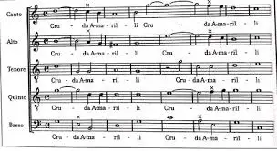 인간이 느끼는 슬픔, 기쁨, 분노, 사랑, 공포, 흥분 등의 감정은 이전에는 신앙심으로 무장하여 꽁꽁 숨겨 놓아야 할 쓸데없는 감정의 낭비였지만, 바로크 시대에는 이를 표현하거나 발생시켜야 하는 필수 요소였습니다. 이를 위해, 바로크의 작곡가들은 기악음악에서는 특수화된 관습적 기법으로, 성악 음악에서는 가사, 정서나 성격, 혹은 극적 상황을 나타내려고 노력했습니다. 몬테베르디(1567-1643)는 그의 마드리갈 집 5권의 "무정한 아마릴리"에서 감정을 표현하기 위해 일부러 불협화음을 무정한 이라던지 아!라는 가사들을 드러내기 위해 사용했습니다. 몬테베르디의 이러한 불협화음의 사용은 당시 음악가들 사이에서 커다란 논란거리를 만들었고, 급기야는 조반니 아르투지와의 설전이 시작합니다. 르네상스 화성학의 기본을 져버렸다는 비판에, 몬테베르디는 자신의 불협화음은 르네상스의 규칙을 넘어선 제2의 작곡법, "second practice"라고 반박합니다. 몬테베르디는 9권의 마드리갈 모음곡을 출판했는데, 이 중 앞의 4곡은 르네상스 정통을 따라 대위법을 준수하고 각 성부에 동등한 비중을 주었고, 제5권은 2 부로 나뉘어 있는데 1부는 르네상스 정통 기법으로, 2 부는 극적인 표현을 위해 주선율이 소프라노와 베이스 파트에 편중되게 작곡했습니다. 이후, 몬테베르디는 자신의 작곡기법에 만족하여 나머지 4 권을 제2 작법으로 작곡하며, 더 이상 틀에 박히지 않고 감정을 표현할 수 있는 음악으로서의 길을 열며 바로크의 원조 할아버지로 등극하시게 됩니다.
