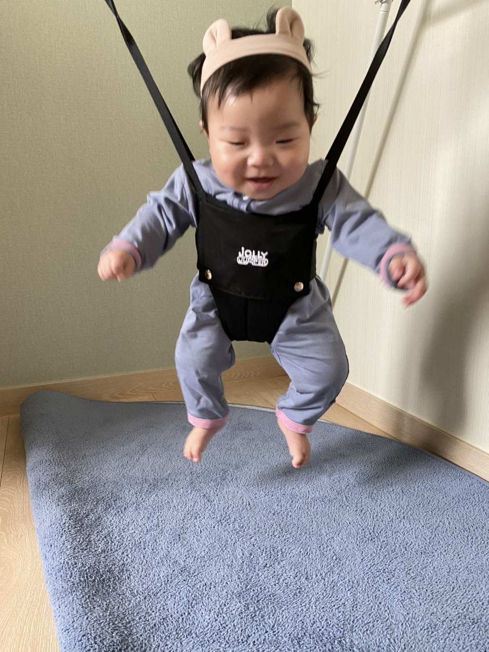 졸리점퍼는 아기가 목을 가눌 수 있는 시기이면 7개월 이전부터도 태울 수 있는 놀이기구인데, 나는 평균보다는 조금 늦게 들여놓았다.