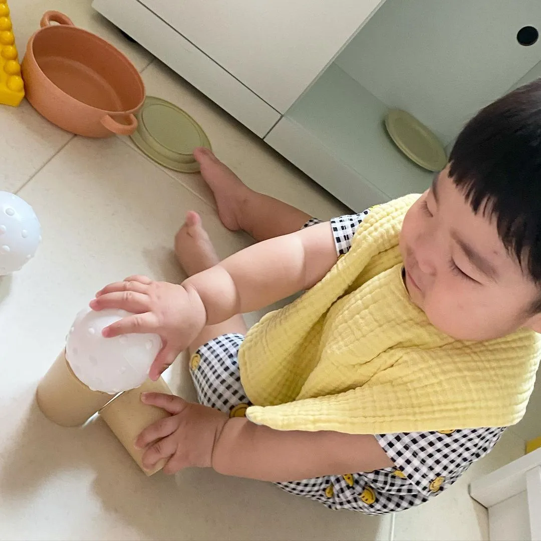 컵을 잡아보고 그안에 무언가를 넣어보면서 소근육 발달을 기를 수 있고, 부딪히고 흔들어 보며 다양한 소리자극을 경험할 수 있다.