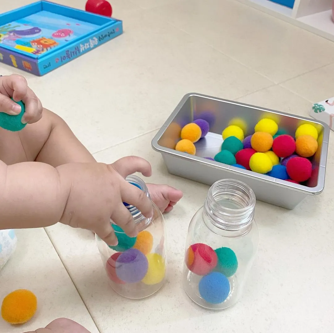 또한 페트병마다 색깔 소품들을 넣어 색깔놀이를 하면서 색 인지를 해볼 수 있다.
