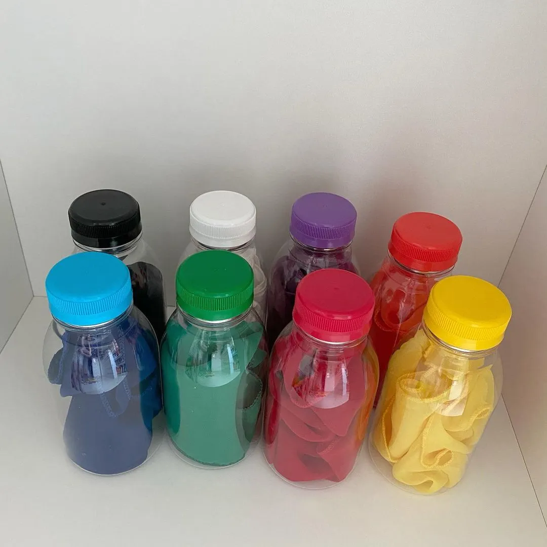 500ml 사이즈의 페트병 여러 개, 색깔 스카프, 방울, 곡물(쌀, 콩, 수수 등), 솜공, 리본 끈, 자연물(나뭇잎, 돌멩이)등