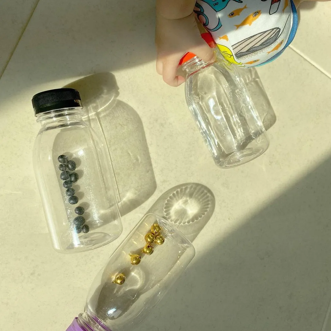 이러한 재료들은 페트병 안에 넣어 제공하기보다 실제로 아이들과 통 안에 담아 보는 놀이를 먼저 해볼 수 있다.