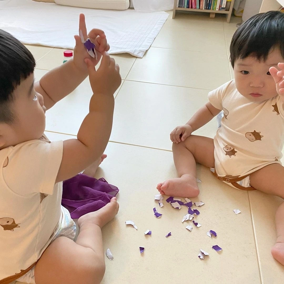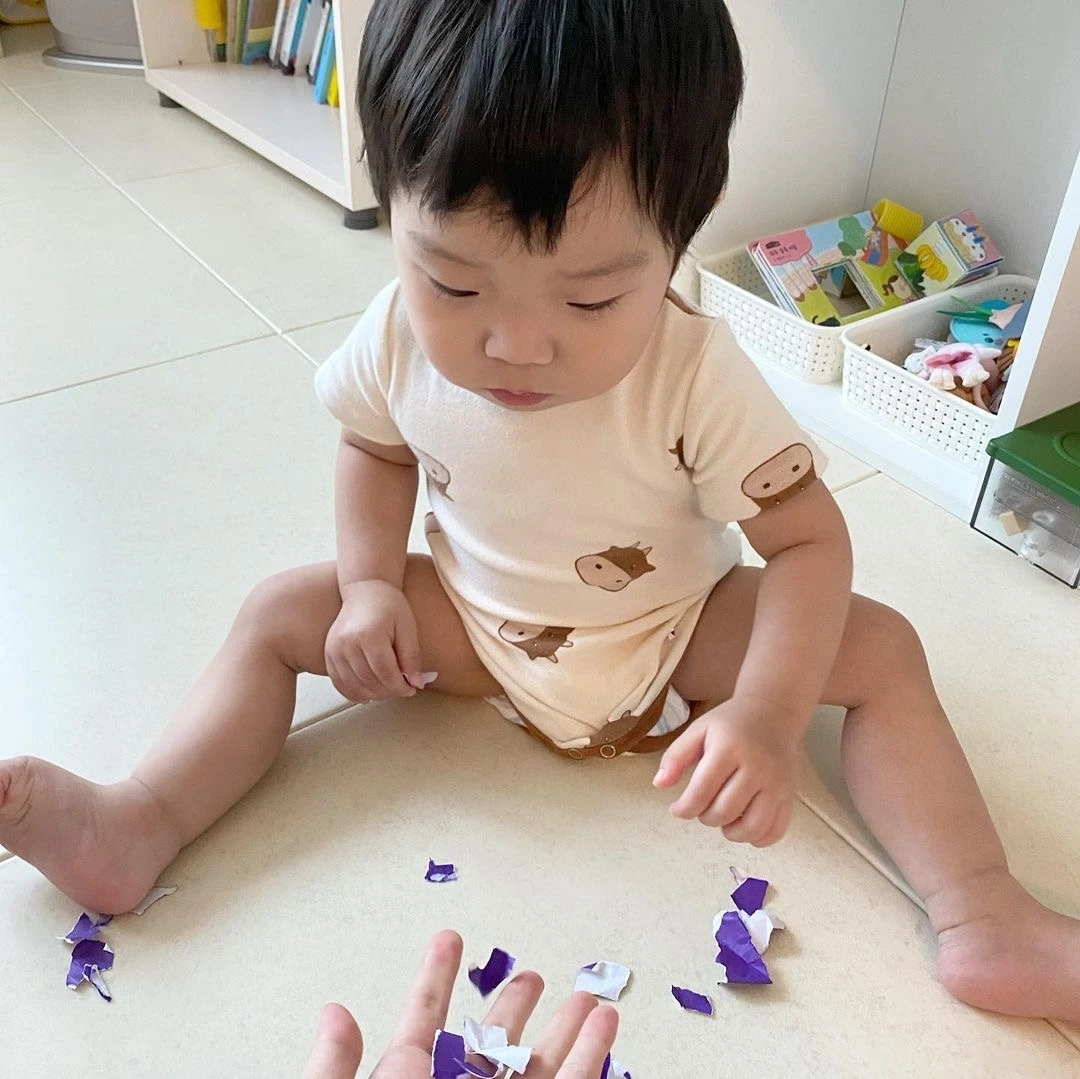 12개월 전후로 종이 탐색놀이를 시작해 16개월쯤에는 색종이를 보다 많이 활용하기 시작했다.
