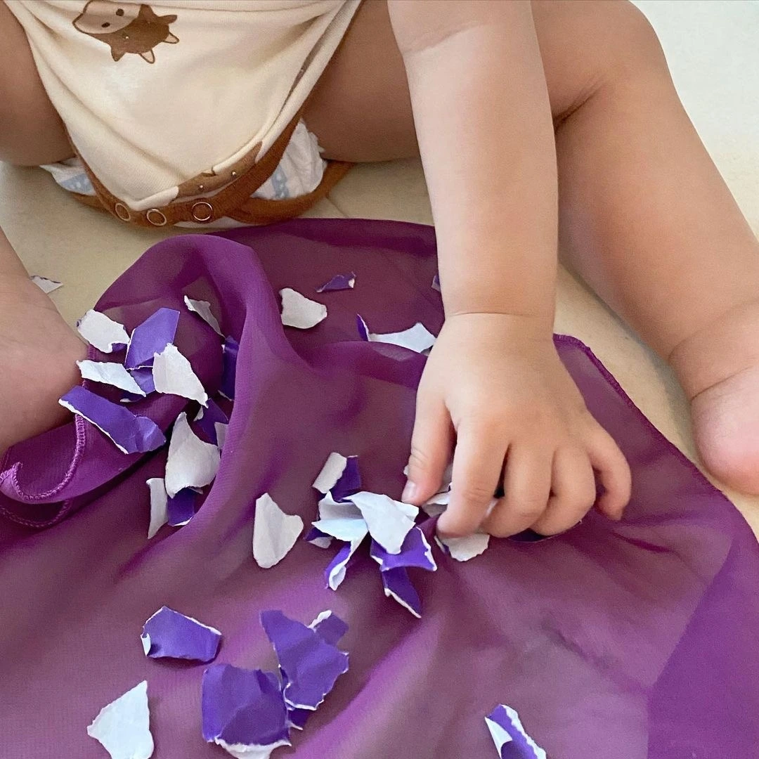 16-18개월 영아 놀이 (스카프, 종이조각, 고무줄 활용)