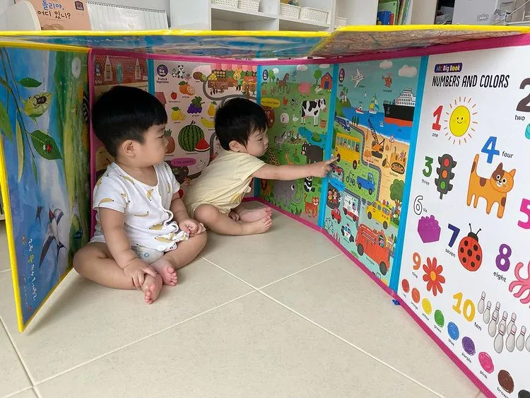 보이는 그림들을 보며 이야기를 나누어 볼 수 있고, 꼭꼭 안으로 숨었다가 "까꿍"하며 일어나는 까꿍놀이를 해볼 수도 있다.