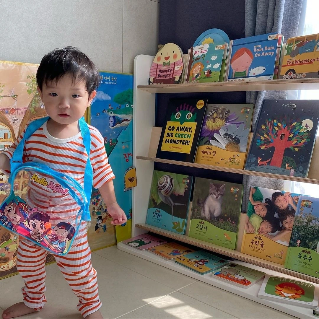 아이가 버클 끼우기를 반복하고 이에 재미를 느낀다면 집안에서 버클이 있는 또 다른 물건을 찾아 아이가 해볼 수 있도록 한다. 우리 집에는 아이들의 미아방지 가방에도 버클이 있어 이 가방을 꺼내와 아이들이 스스로 꺼낼 수 있는 위치의 교구장에 비치해주었다. 또한 한동안 하이체어를 거실 벽 쪽에 붙여 두고 아이가 언제든지 와서 버클을 끼워 볼 수 있게 했다.