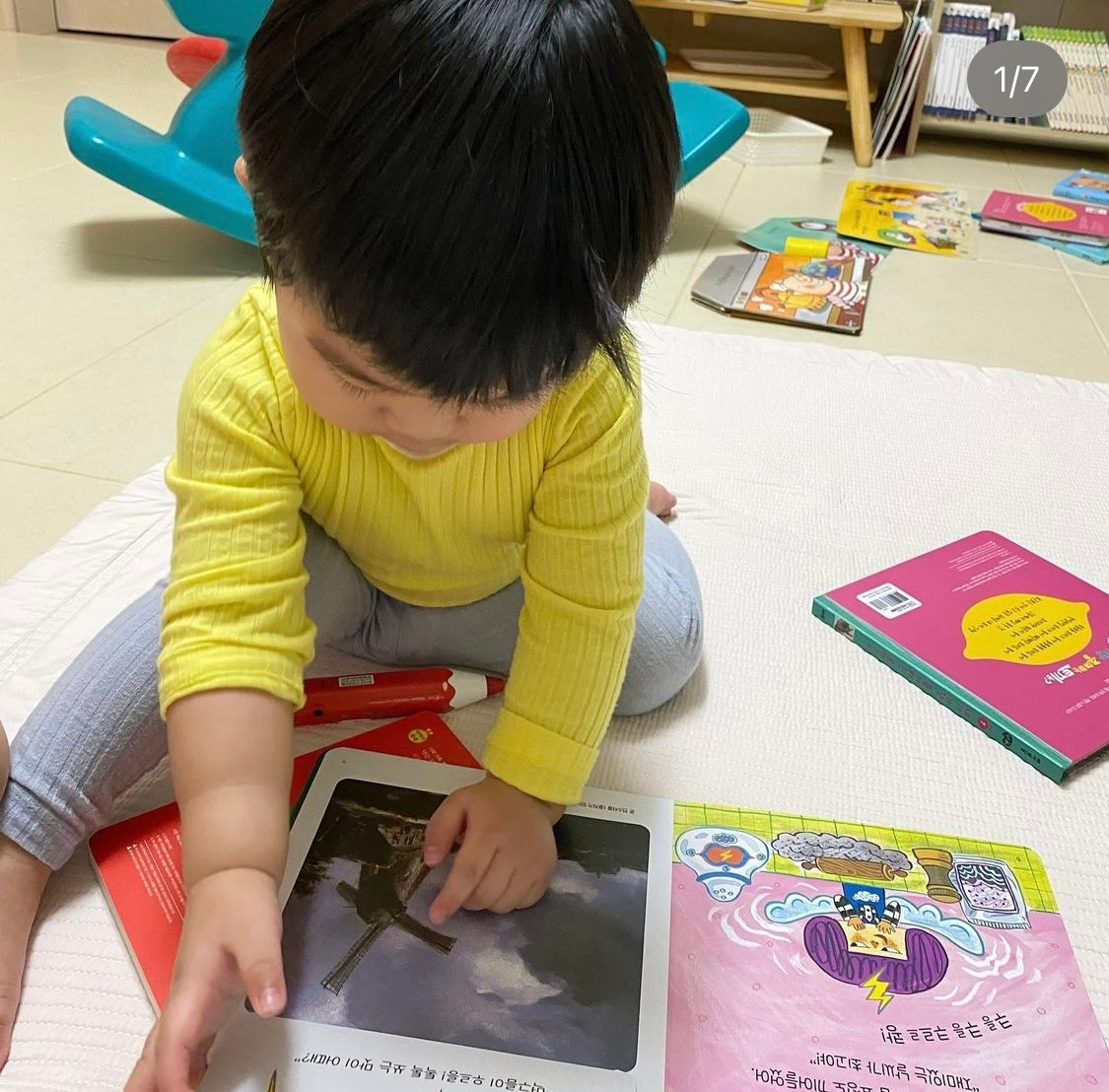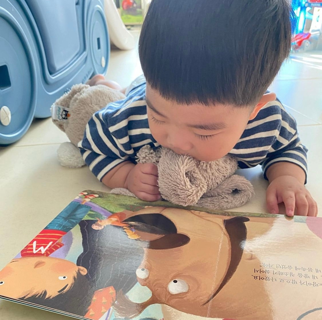 특히 엄마가 읽어주었던 이야기와 그림을 기반으로 책을 보는 영아기에는 책을 많이 보는 것보다(빠르게 휘리릭 넘기고 닫고 다른 책을 꺼내 반복적인 행동을 한다면 일종의 소근육 놀이 일 수도 있다.)