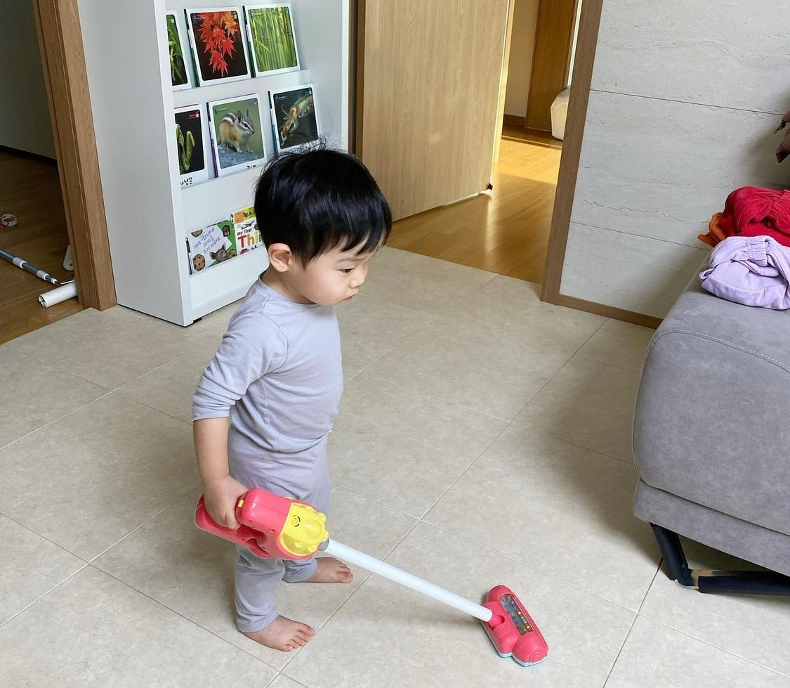 19개월 전후부터는 청소기, 밀대 등 조금 더 큰 청소도구들에 관심을 보이고 직접 해보고 싶어 해 놀잇감 청소기를 준비해주었고, 밀대는 실제 밀대를 사용해 볼 수 있도록 했다.
