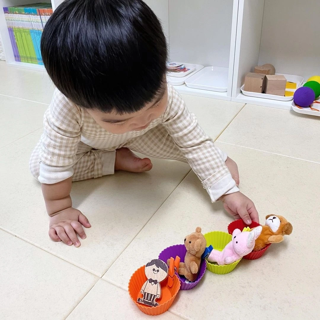 머핀틀은 잘 끼워지고 빠져 아이들이 성취감을 얻을 수 도 있으며, 머핀틀을 끼울 때마다 숫자 세어주기, 끼운 머핀틀을 색깔을 말해주기등 다양한 상호작용을 해줄 도 있다.