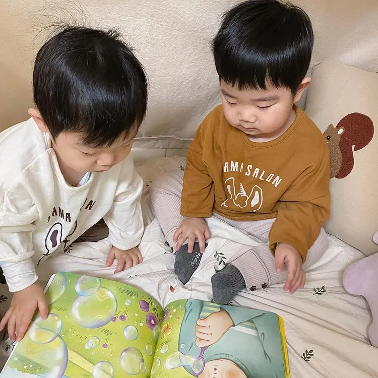 비눗방울 주제의 그림책이나 비눗방울 놀이를 하는 장면 혹은 비눗방울 그림이 등장하는 그림책 페이지가 있다면 아이들과 함께 본다.