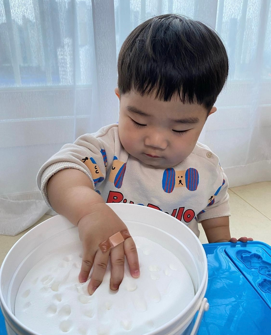 "이준이 손이 여기에도 있고 점토 위에도 있구나"