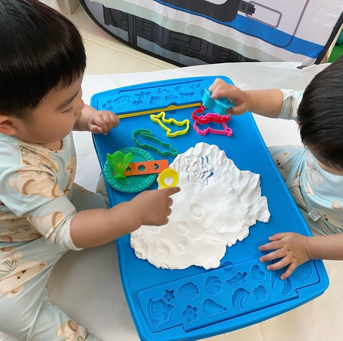 놀이 중 반죽이 입으로 갈 수 있기 때문에 구강기 아기들과는 밀가루 반죽으로 놀이하는 것이 가장 좋으며, 두 돌 전후의 아기들과는 보다 다양한 종류의 점토로 놀이해 볼 수 있다.