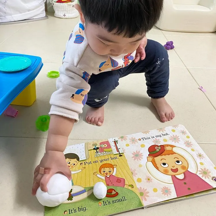 길이 주제의 그림책이나 책 속에 길이에 대해 언급하는 페이지가 있다면 펼쳐두고 그 위에 길게 만든 점토를 올려 이야기를 나눈다. 길게 만든 점토는 긴 그림 위에, 조금 짧게 만든 점토는 짧은 그림 위에 올려두고 비교하며 이야기한다.