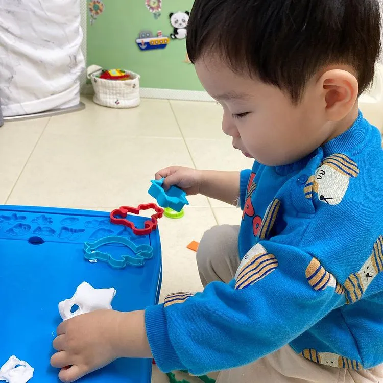 처음 점토 놀이를 할 경우 점토 뭉치는 것을 어려워할 수 있다. 점토를 동그랗게 뭉쳐서 주고 뭉친 점토를 굴리며 놀이해보는 것도 좋다.