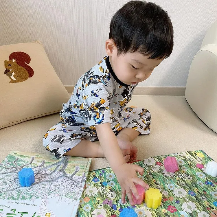 꽃 그림 위에 꽃송이폼 올려보기, 꽃 그림과 같은 색 꽃송이폼 찾아보기, 꽃송이 봄으로 그림책 겉표지 꾸며보기 등 다양한 놀이들을 할 수 있다.