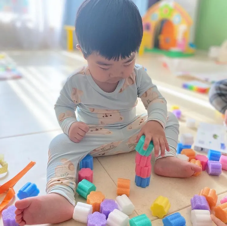 꽃송이 폼을 블록처럼 위로 쌓아보기, 옆으로 길게 나열해 보기, 모양 만들어보기등으로 다양하게 활용해 본다.