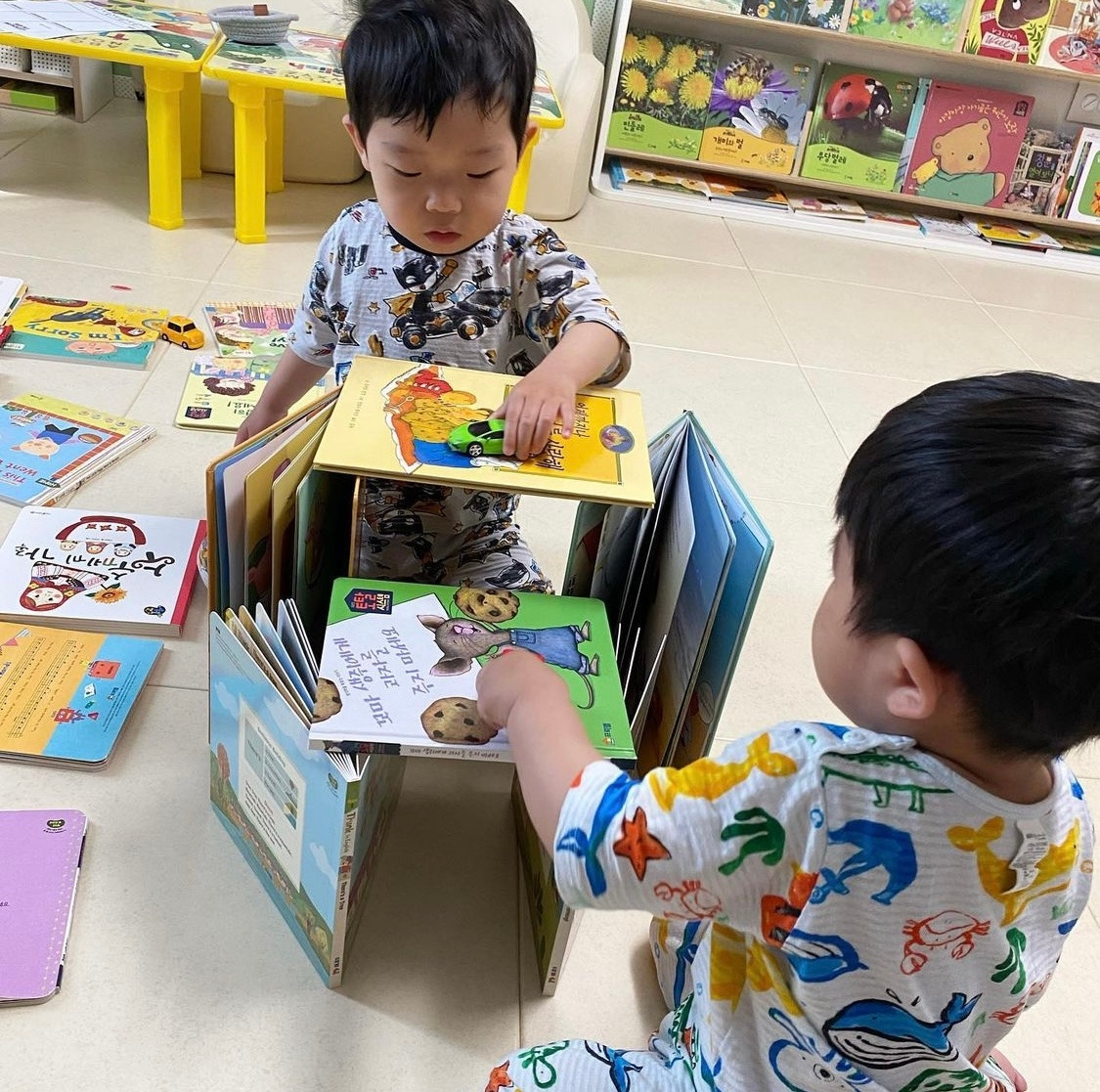 그림책을 블록처럼 활용해 놀이해본다.