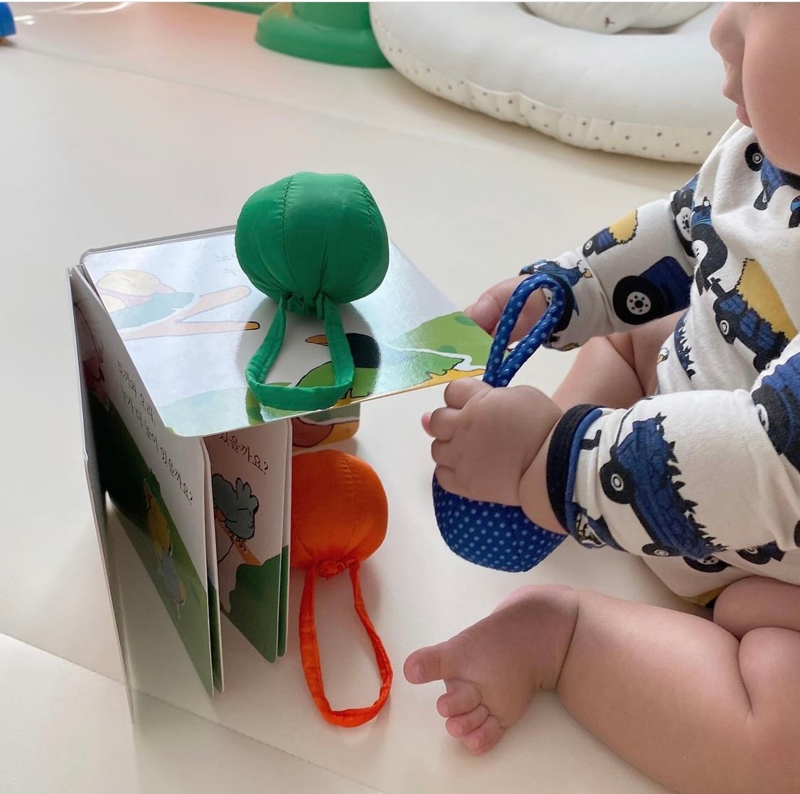 아기가 풍선을 좋아할 경우 그림책에서 풍선을 찾거나 풍선과 같은 모양의 그림을 찾아 풍선을 제시하고, 그림책을 다 보고 난 다음 풍선으로 자유롭게 놀이해 본다.