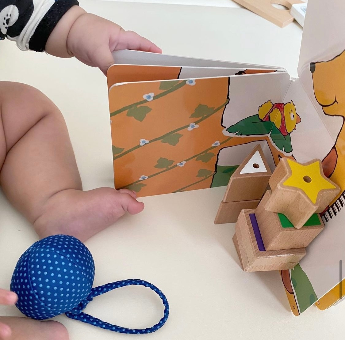 아기가 성장해 생후 1년에 가까워질수록 책장에서 그림책을 꺼내 보는 것이 점차 가능해지지만 그전까지는 책을 여기저기에 두고 아기가 자연스럽게 볼 수 있는 환경을 구성해놓는 것이 좋다.