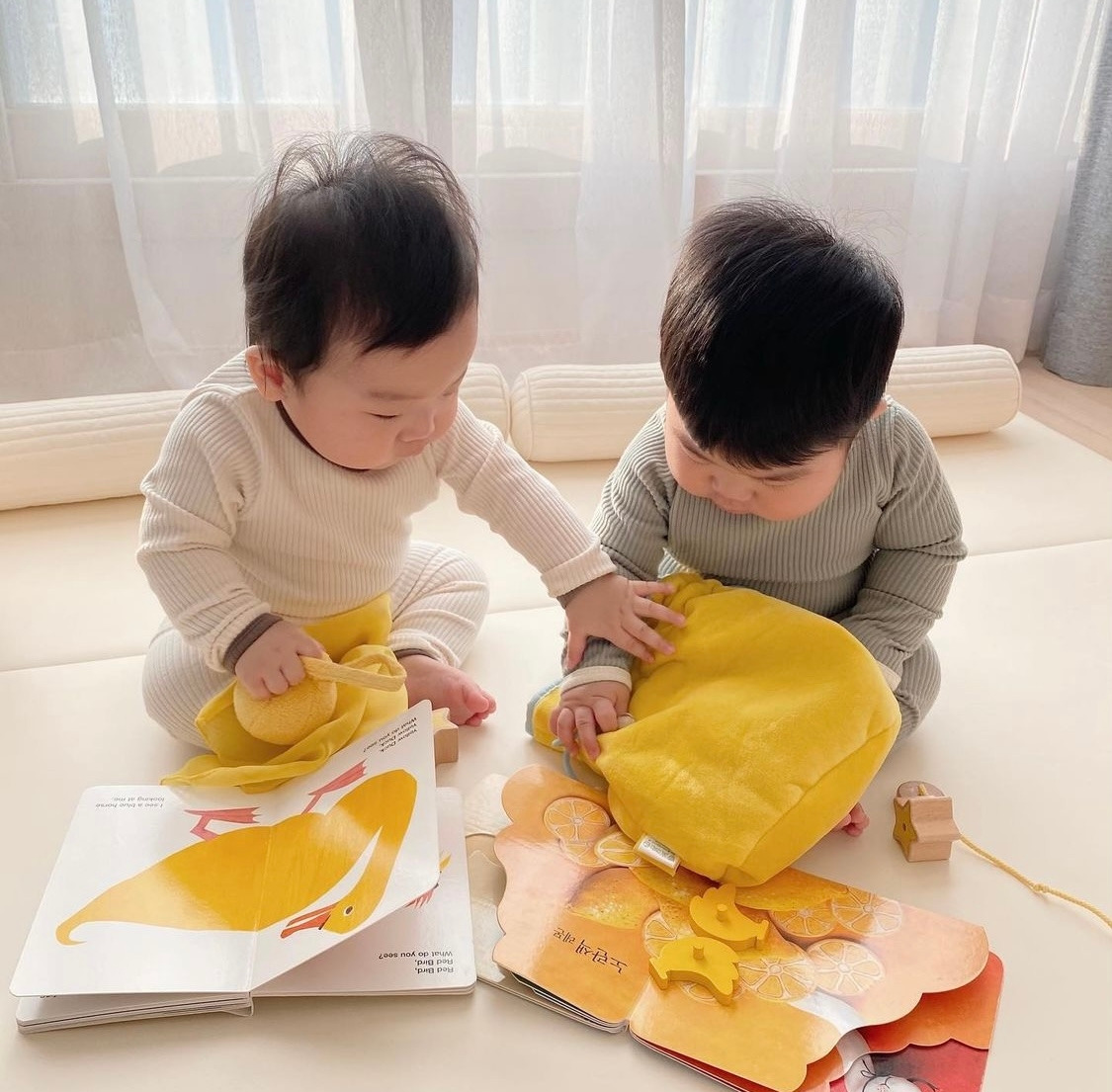 그림책을 보기 전 책과 관련해 하는 활동을 사전 독후활동, 그림책을 보고 난 뒤 하는 활동을 사후 독후활동이라고 한다. 하지만 이 시기에는 '활동'이라고 지칭하며 아기들과 독후 활동을 하는 건 적절하지 않다. 그림책을 보기 전이든 보는 중이든 보고 나서든 상관없이 관련 놀이를 해보자. 결과물에 초점을 두지 않고 그 순간 아기의 흥미를 파악해, 그 순간 떠오르는 아이디어를 더해 놀이를 해주는 것이다.