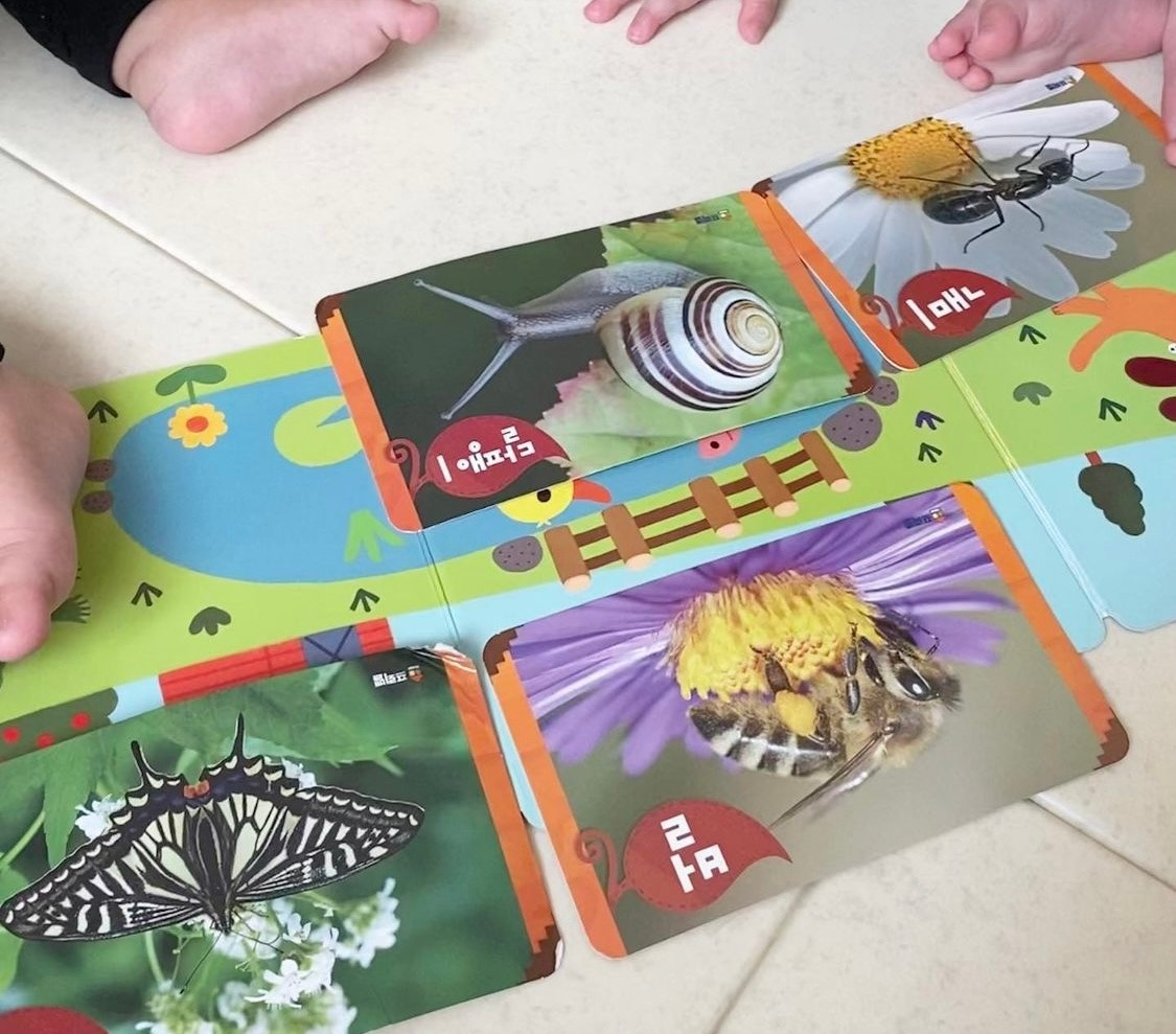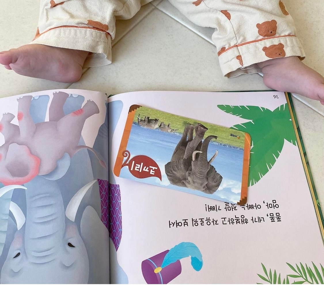 그림책은 실사보다 그림으로 구성된 경우가 많다. 때문에 실물 카드가 있다면 그림책을 보여주면서 함께 제시해줄 수 있다. 그림과 실사를 함께 보면서 아기의 보는 시각이 넓어지고, 그림책을 보여주는 성인도 실사를 보며 이야기해줄 수 있는 거리들이 늘어 난다.