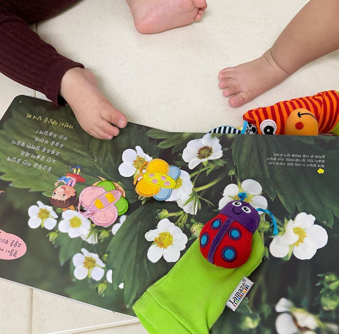 - 꽃이 등장하는 그림책을 준비해 그 위로 곤충 인형들을 움직이며 놀이해본다.