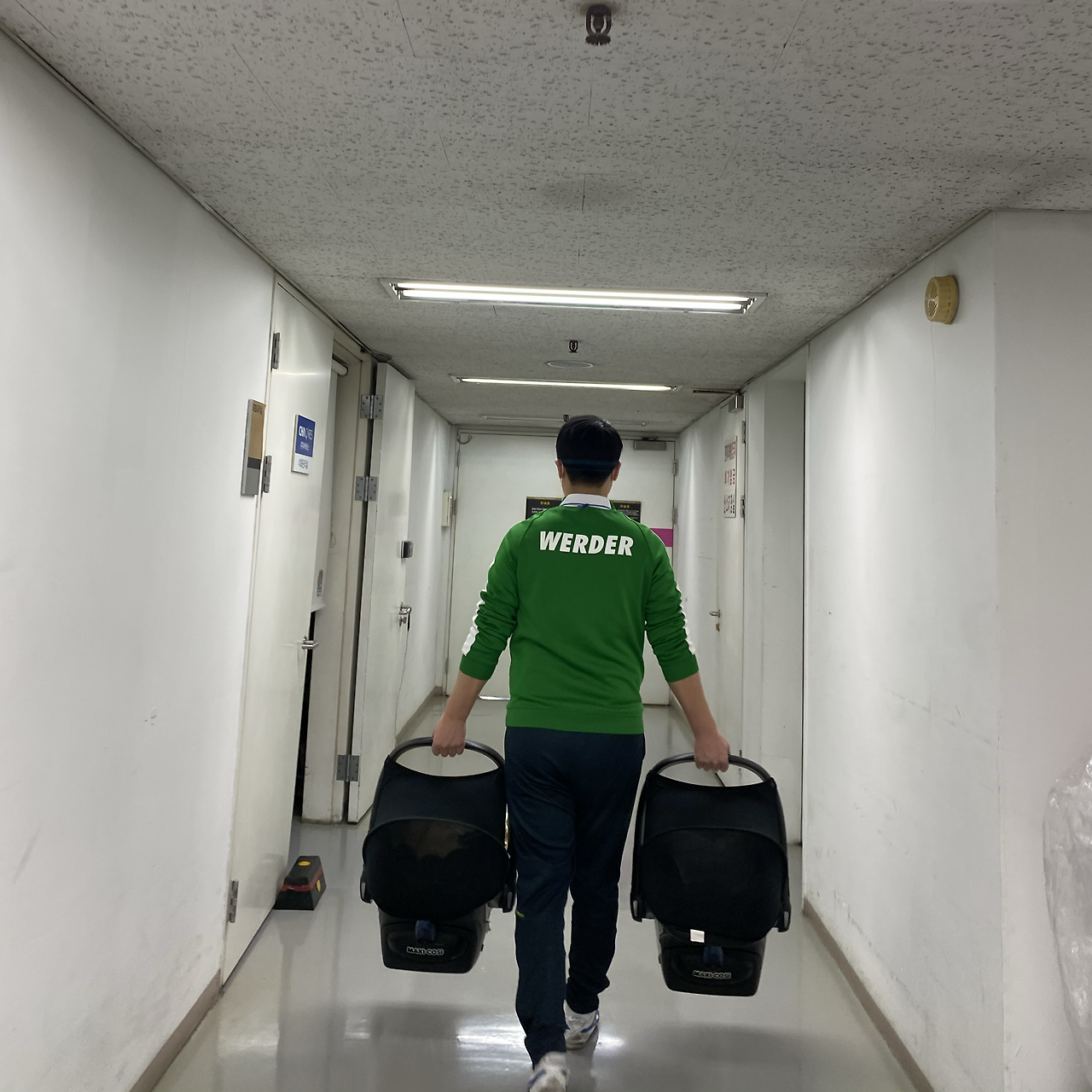 505호실. 나름 정들었던 병실에서 놓고 가는 물건은 없는지 다시 한번 살핀 뒤 그곳을 나왔다. 신생아실로 가서 준비한 아기들의 옷과 모자를 건넸고, 얼마 후 아기들은 병원에서 입던 옷이 아닌 귀여움이 가득 담긴 옷을 입고 간호사의 품에 안겨 나왔다. 귀여움도 잠시 나와 Cho는 아기들을 조리원까지 잘 데려갈 수 있을지 걱정 투성이었다. 이 걱정을 알았는지 등 뒤로는 식은땀이 흘렀고, 심장은 두근두근 떨려왔다.