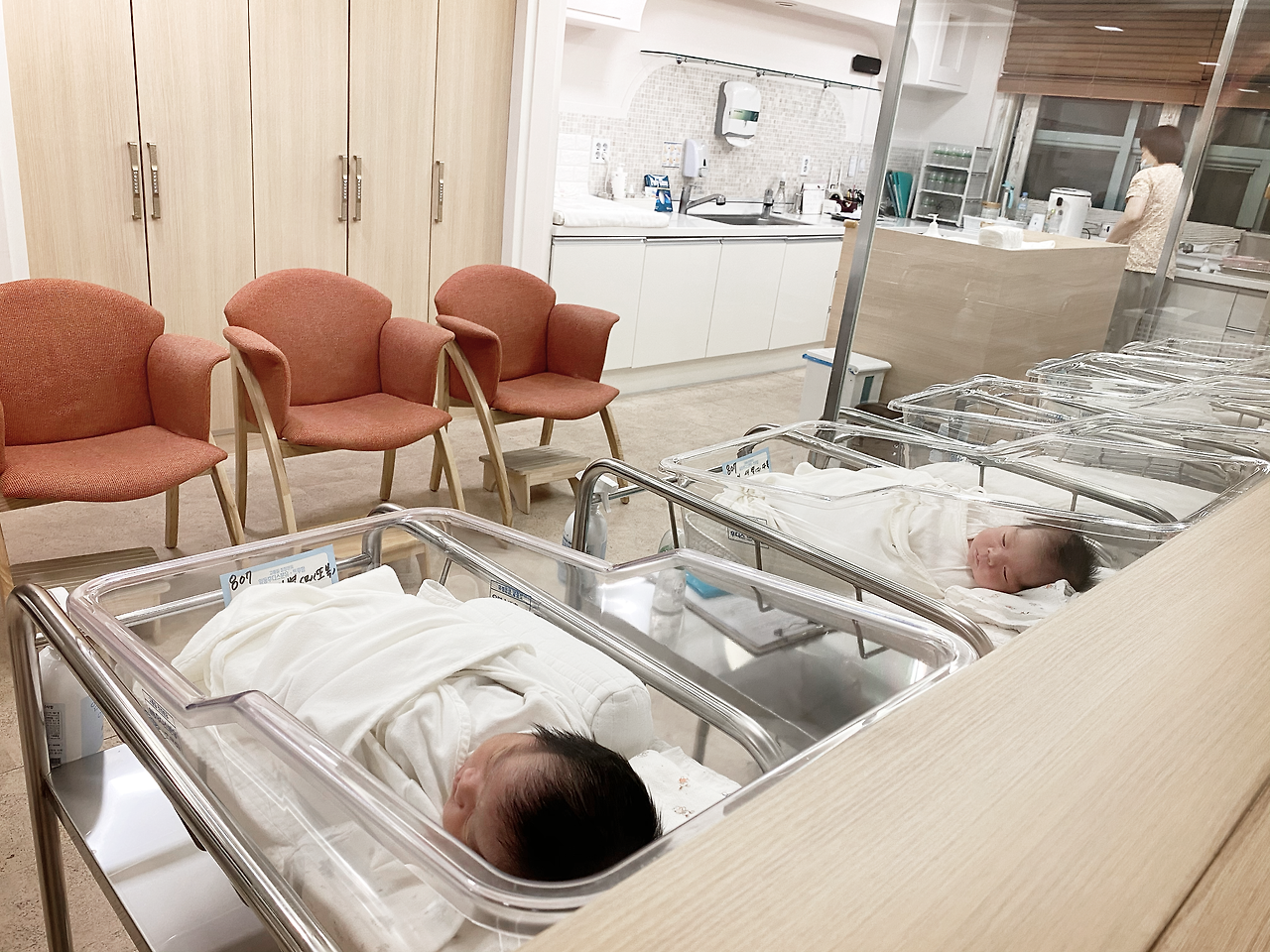 신생아실 창문을 바라보며 우리 아기들이 있는 쪽을 찾아보았다. 곤히 잠들어 있는 다복이와 또복이.