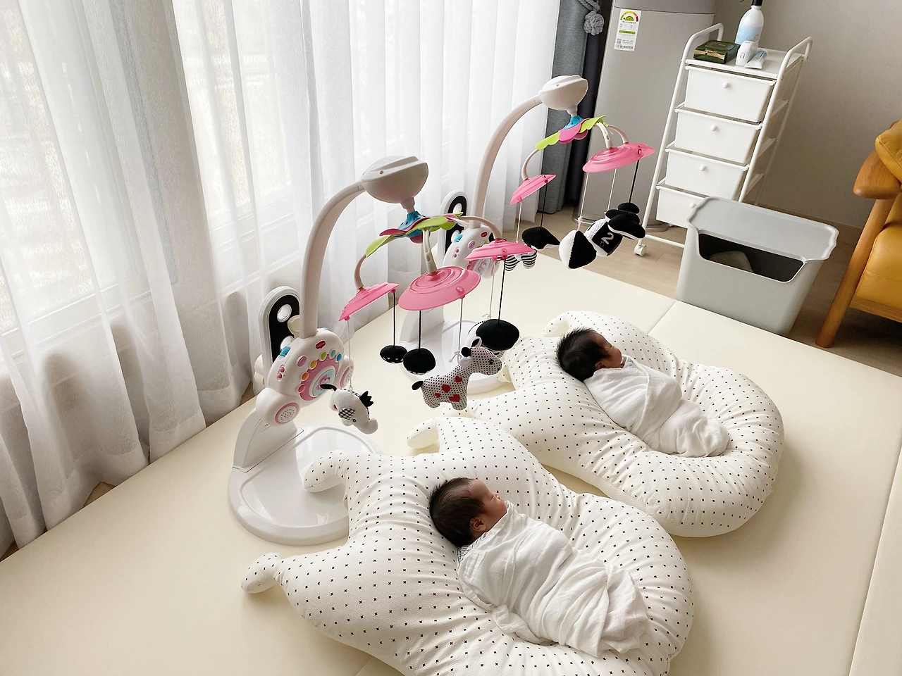 바구니 카시트에 앉아 있는 작은 아기들을 보며 이제는 할머니, 할아버지가 된 두 분은 연신 미소를 지우지 못했다. 집에 도착해 아기들을 바구니 안에서 꺼냈고 거실에 미리 마련돼있던 매트 위에 아기들을 눕혔다.