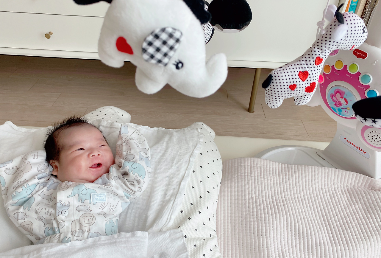아기가 눈을 뜨는 시간이 길어진 어느 순간부터, 눈을 뜨면 그 크기를 더 크게 장착하고 눈을 굴려 세상을 살펴보았다. 그리고 엄마가 준비해준 흑백모빌이 소리를 내며 돌아가면 그 모빌의 움직임을 따라 눈도 천천히 움직였다.