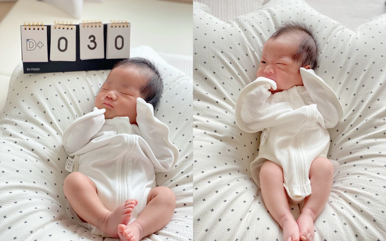 처음 생후 한 달의 기간 동안 아기는 대부분 잠을 잤고 눈을 뜬 모습을 보는 것이 어려울 정도였다. 가끔 눈을 뜨면 그 모습을 사진으로 남기기 위해 어찌나 많은 노력을 했었는지 모른다.