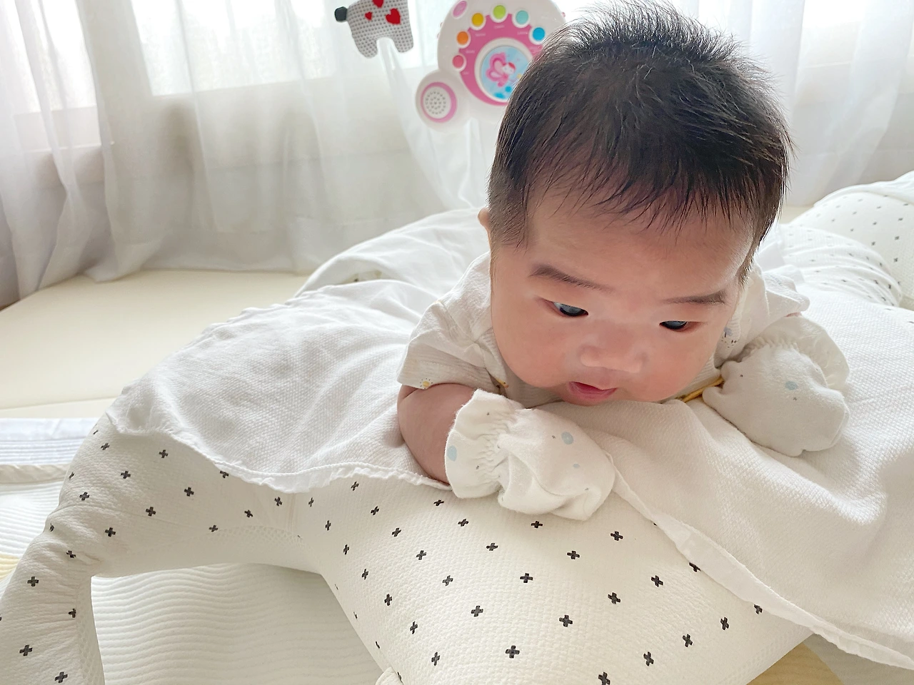 처음에는 쿠션 위에 아기를 엎어놓았는데, 쿠션의 도움을 받아서 인지 처음 터미 타임을 할 때도 고개를 살짝 드는 모습을 보였던 아기들. 며칠 반복하자 이현이는 쿠션 위에서 고개를 꽤 잘 들고 버틸 수도 있게 되었다. 아직 이준이는 힘들어 하지만.
