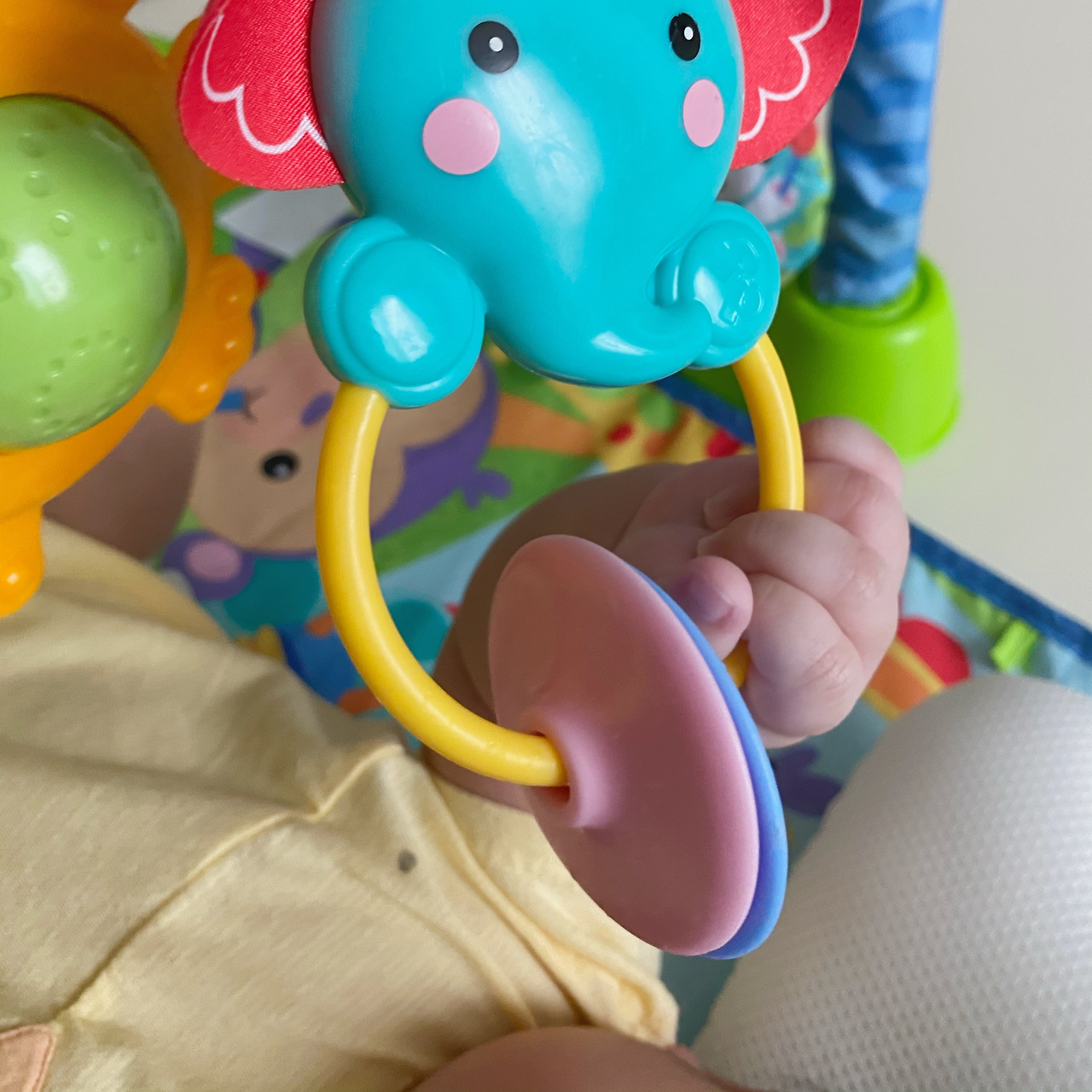 모빌을 보며 놀거나 아기체육관에서 놀 때, 성인이 안아줄 때 등 다양한 상황에서 아기는 팔과 다리를 쭉 편다. 쭉 펴면서 몸에 힘이 들어가게 되고 가끔은 자신도 모르게 팔과 다리를 휘두르는 아기들.
