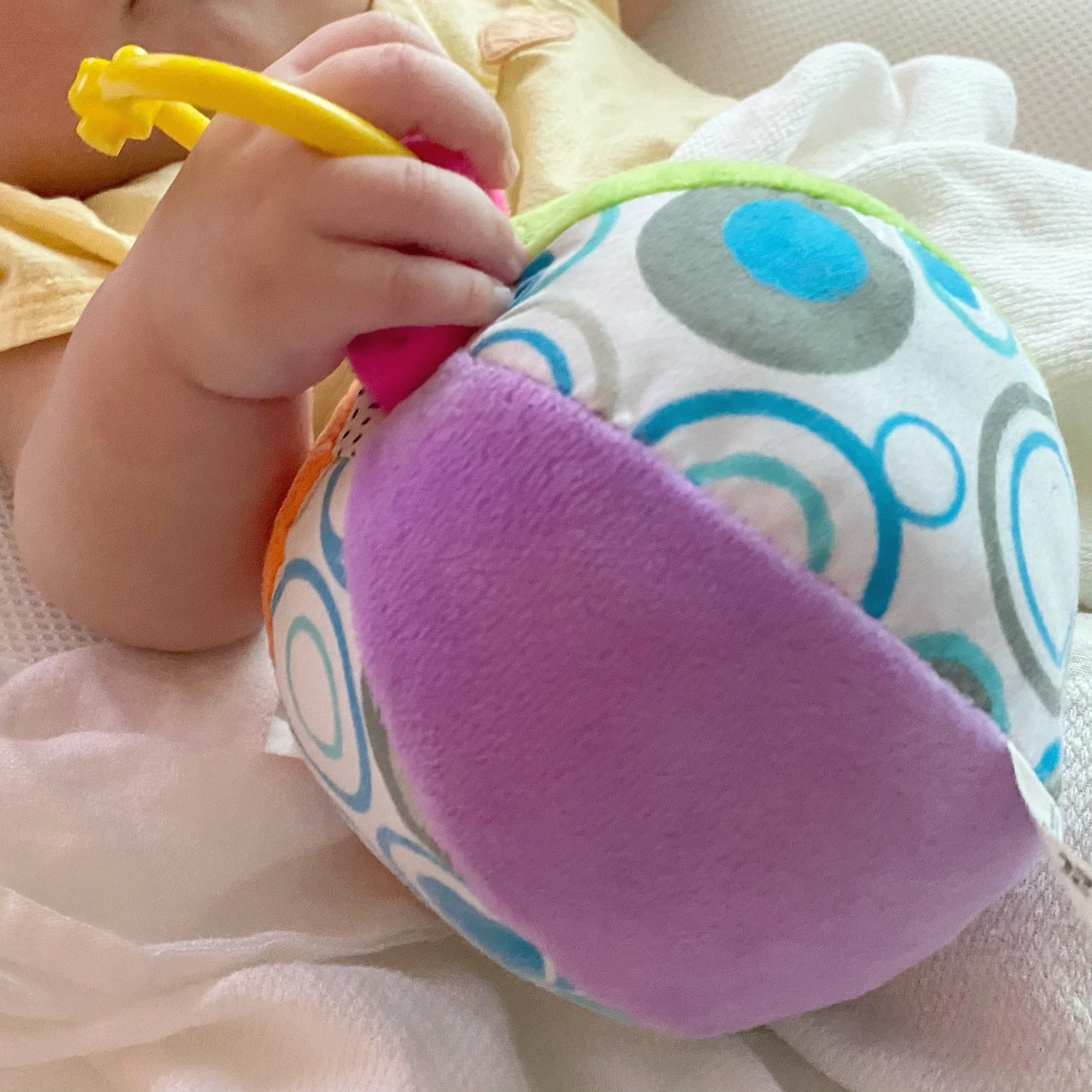 쉽게 잡아 볼 수 있는 공인 오볼과 함께 딸랑이, 손수건 등을 잡아 볼 수 있도록 하는 건 아기의 소근육 발달에 도움을 줄 것이다.