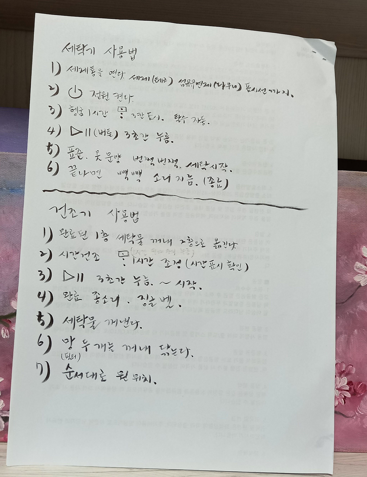 이리하여 나는 사근 사근 세탁기와 건조기 사용법을 알려주었다.