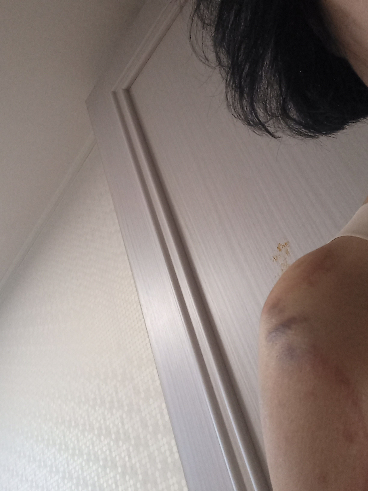 왼쪽 어깨와 팔에 초록색 멍이 잉크처럼 번지기 시작했고 중간중간 파랗다 못해 적갈색을 띤