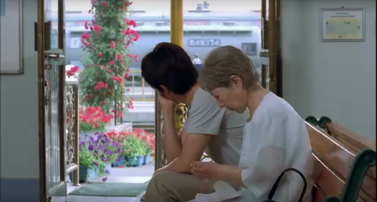 영화의 후반부에 할머니는 또 기차역에 간다(치매가 걸린 할머니는 할아버지를 기다린다며 계속 기차역에 간다). 그런 할머니에게 "가요. 이제 정신 좀 차리세요!"라고 말하는데 할머니는 조용히 사탕을 상우에게 먹인다. 그리고 그걸 먹는다. 이제 정신 좀 차리라는 말이 상우 본인에게 하는 자기성찰적인 메세지처럼 느껴지지만, 중요한 건 속상해하는 상우에게 사탕을 주는 할머니의 마음이다. 상우의 가족은 곁에 누군가가 아파하면 소주든, 사탕이든 뭔가를 주면서 위로를 하는 사람들이라는 것이다. 상우는 그런 사람들과 함께 살아왔다.