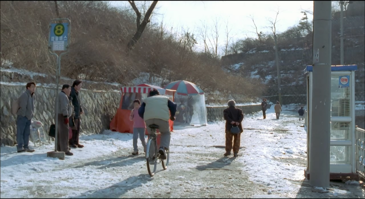 오프닝에서 상우(유지태)의 할머니가 눈이 내린 길을 천천히 걸어가고, 상우는 할머니를 부르며 따라간다. "할머니! 어디가요! 할머니 같이가" 여기서 인상적인 것은 상우는 자전거를 타고 할머니를 따라잡고 자전거에서 내리지만 할머니는 아랑곳 않고 속도를 내며 걷는 것이었다. 할머니와 상우의 보면 둘은 같은 길을 가지만 같이 가고 있다고 볼 수 없다. 왜냐하면, 할머니는 앞서가고 자신의 속도와 방향으로 길을 가지만, 상우는 따라가는 것에 불과하기 때문이다. 서로의 속도를 맞추는 게 아니라 한 명이 자신의 길을 가고 나머니 한 명은 그 길을 따라가려 하는 꼴인데, 이것을 함께 간다고 할 수 없기 때문이다.