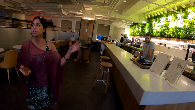 로비 공간에 들어가는 순간 예사롭지 않은 분위기를 느꼈습니다. 독특한 식물로 인테리어되어 있는 벽, 그리고 개성강한 다양한 이용자들이 각자 자신의 업무를 보고 있었습니다. 또한 곳 곳에 형이상학적인 기호들이 잔뜩 새겨져 있었고, 조명이며 벽에 걸린 작품들, 소파, 테이블, 양탄자까지 모두 신비로운 기운을 내뿜었어요. 매니저의 말을 빌리자면, "새로운 가치를 띤 공간인 만큼 새로운 느낌을 주길 원하고, 새로움을 찾는 사람들만이 이 공간에 찾아옵니다. 이 공간은 2600개의 식물로 채워져 있고, 그것을 바라보고 함께하는 것만으로도 건강해짐을 느끼게 함과 동시에 최상의 컨디션을 제공하길 원해요"라고 했습니다.