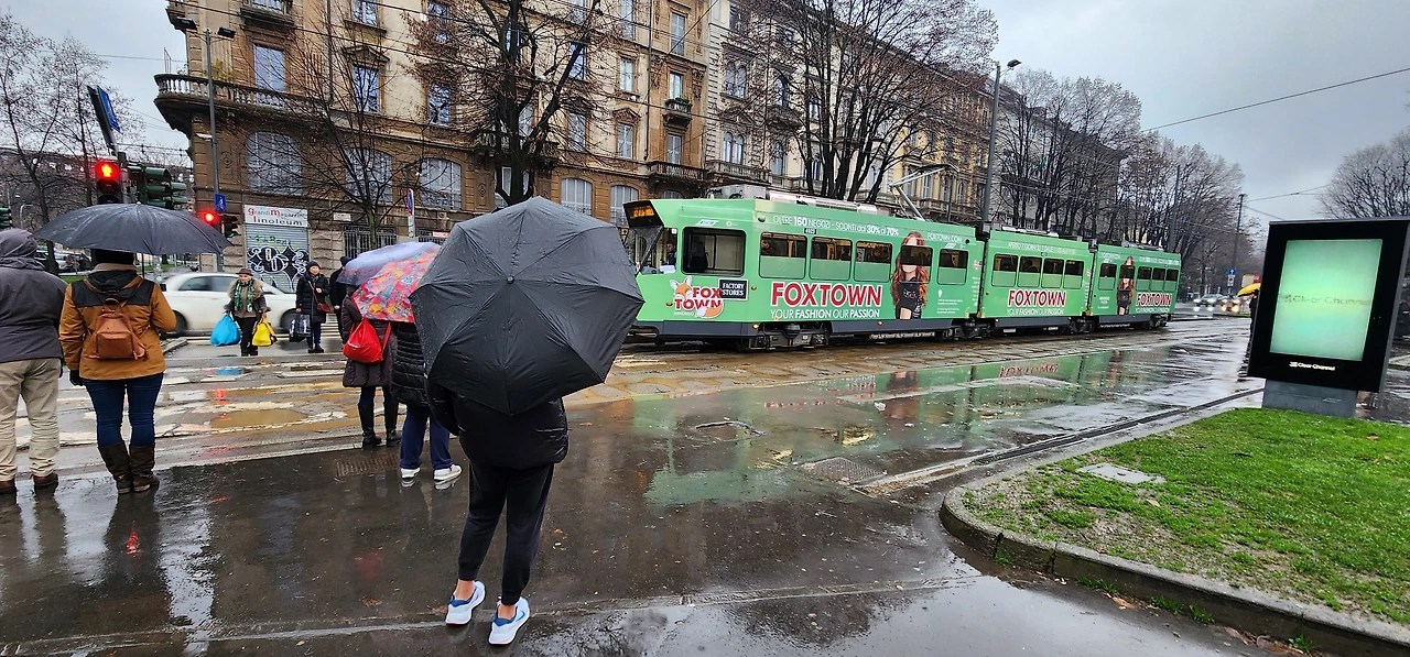 녹색의 트램이 비내리는 밀라노와 어울린다스포르체스코 성에서 밀라노 두오모 광장을 향한다. 비 내릴 때 여행은 운치는 있지만 힘들기도 한다, 아내의 신발이 방수가 안되어 발이 퉁퉁 불었다기에 신발가게에서 신발을 구입했다. 상하이에서도 신발을 샀었는데, 자유여행은 신발이 중요하다. 첫째는 한국에는 없는 농구화를 발견하고 꼭 사달란다. 명품숍은 안 갔지만 쇼핑이 시작되었다. 애들은 옷가게마다 들어가 보고 점퍼나 티셔츠 등을 구입하였다. 뭔가 밀라노에서 보니 옷들이 더 예뻐 보였나 보다.