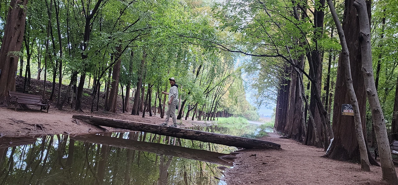 두 번째 사진은 천년의 숲. 가을의 서늘한 바람을 맞으며 깊은 숲길을 걷는 장면이 떠오른다. 나무 사이로 드리운 햇살은 따뜻하고, 발 밑에 흐르는 실개천에는 나무들이 반사되어 더없이 평화로운 분위기를 연출한다. 나무들이 만들어낸 터널을 걷다 보면 마음속의 모든 잡념이 사라지고, 그저 자연의 일부가 된 듯한 기분을 느낀다. 경주의 가을은 이처럼 낮과 밤의 아름다움이 서로 다른 매력을 가지고 있다. 낮에는 자연의 생명력이 넘치고, 밤에는 고요하고 은은한 아름다움이 우리를 감싸준다. 도시의 불빛이 화려하게 빛나지만, 그 속에서 역사의 흔적을 찾아볼 수 있는 경주의 매력은 시간과 공간을 초월하는 느낌을 준다. 이 두 장의 사진 속에서 가을의 경주는 자연과 역사의 조화 속에서 빛나는 도시임을 다시 한번 깨닫게 한다.