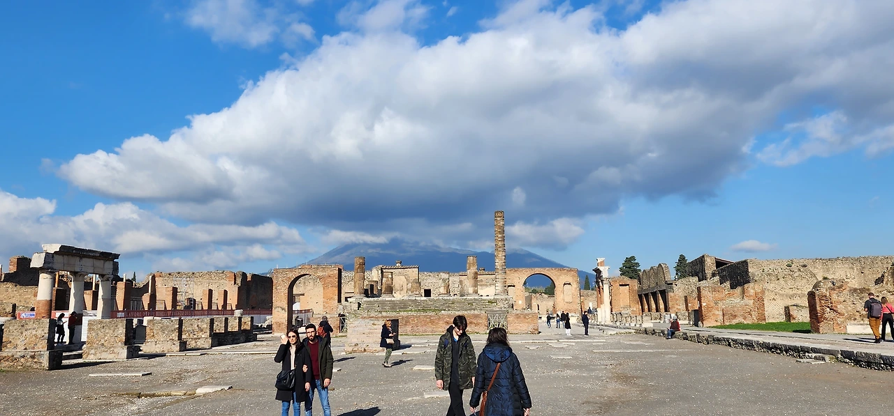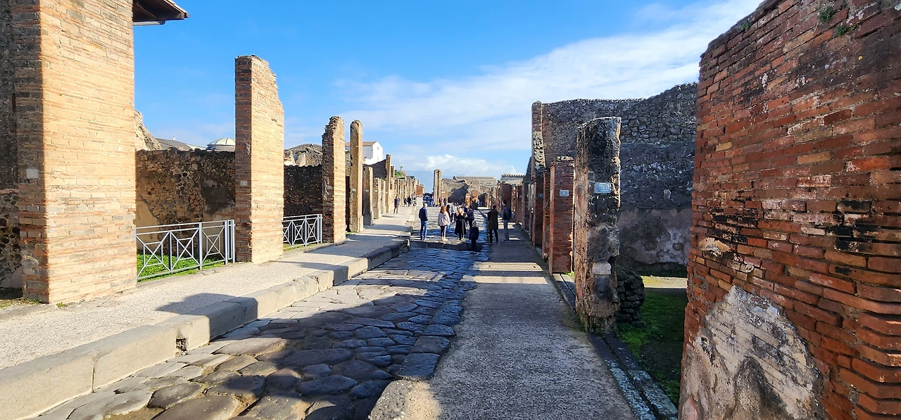 2천여 년 전 폼페이는 도시계획이 잘된 도시였다. 차도와 인도가 나눠져 있고 큰 돌들로 포장되어 있는 도로를 중심으로 상점, 주택, 궁중목욕탕, 극장, 원형경기장 및 심지어 패스트푸드 시스템의 빵집까지 있었다니 놀라울 따름이다. 현재 우리가 살고 있는 모습과 너무 유사했다.