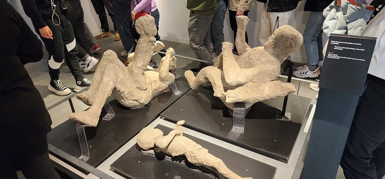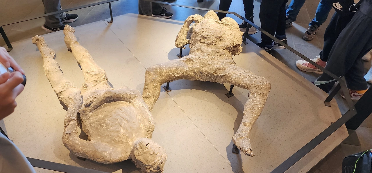 화산재에 덮인 채로 발견된 사람들은 속이 이미 썩은 상태로 그 안에 석고를 부어 미라 형태로 박물관에 있었다. 아기와 놀아주던 모습의 석고미라는 자꾸만 뒤돌아보게 만든다.