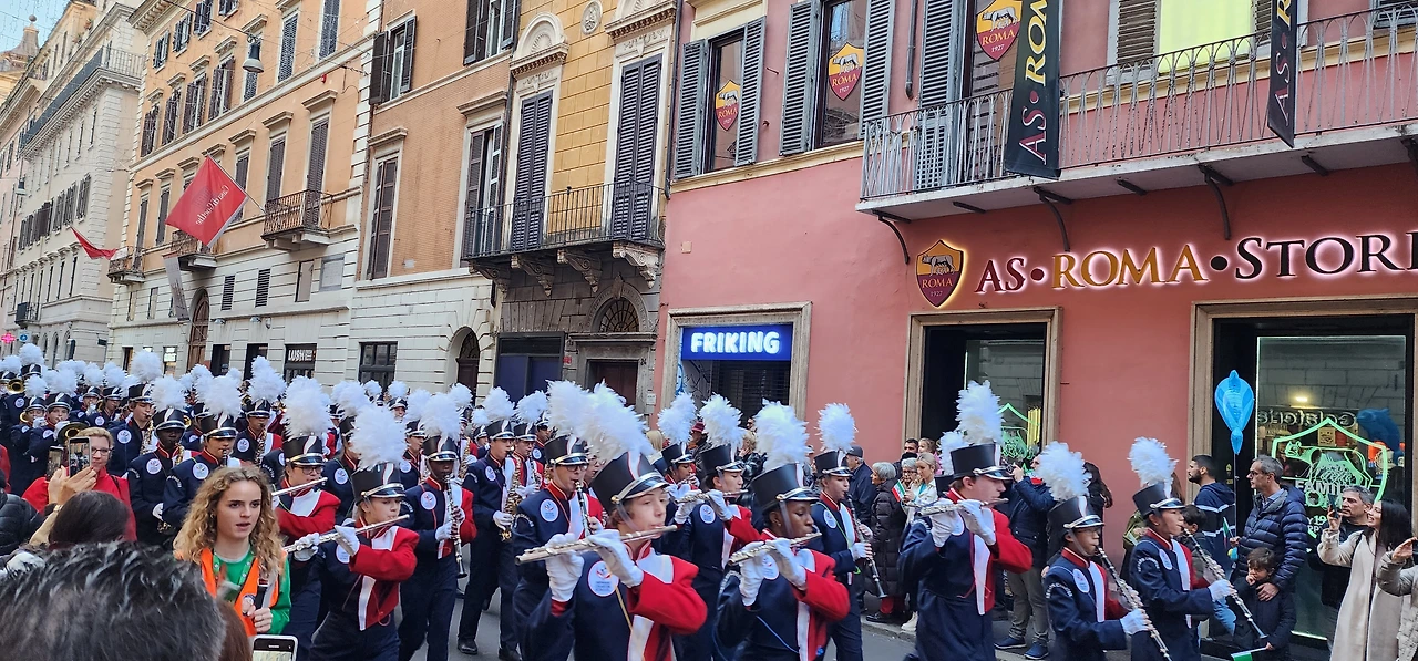 나보나 광장에서 포폴로 광장으로 걸으며 레스토랑에서 식사를 하고 나오니 신년행사로 퍼레이드가 지나가고 있었다. 악대부, 외발자전거, 학교를 대표하는 그룹 등 아주 다양하고 한참을 구경해도 끝이 없을 만큼 퍼레이드는 길었다. 우리 가족은 뜻하지 않은 구경거리에 기분이 좋았고, 꼭 "걸어서 세계 속으로 이탈리아 편" TV프로그램 속에 떨어진 기분이었다.